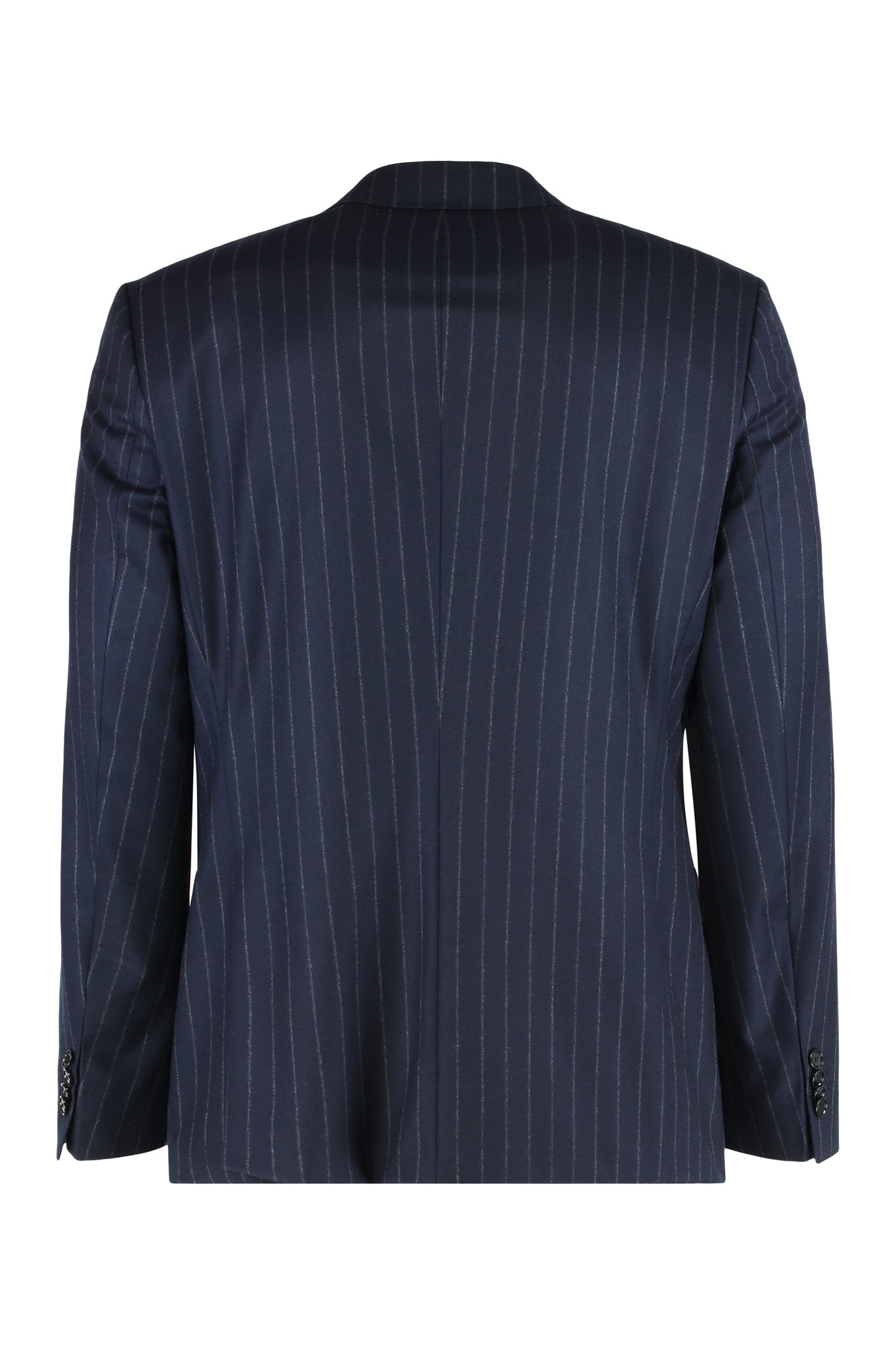 Questo abito è realizzato in lana vergine con elasticità naturale per il massimo comfort, questo abito due pezzi slim fit presenta un blazer doppiopetto con spalle strutturate, un collo a revers e due tasche con patta e taschino. Interno foderato per un maggiore comfort e un tocco di classe. I pantaloni presentano una chiusura con zip e bottone e due tasche laterali. Il motivo gessato aggiunge un tocco di carattere classico a questo completo.